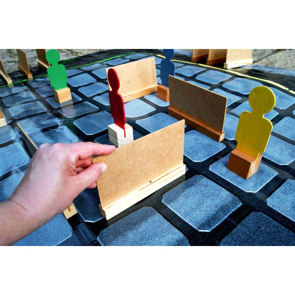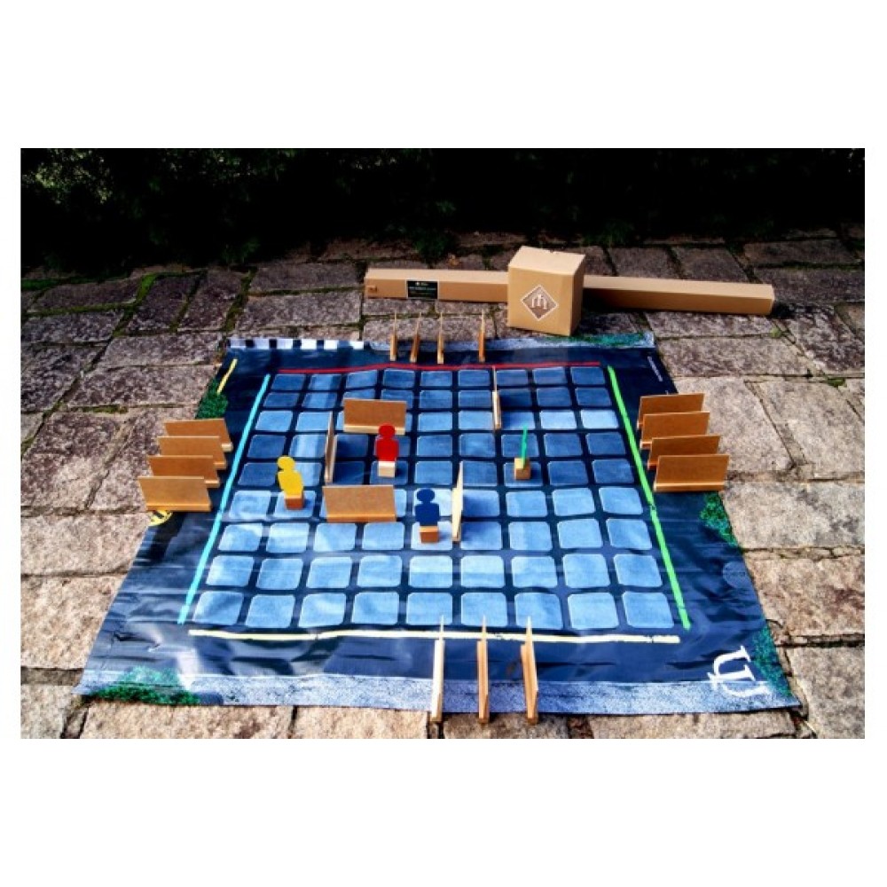 Material: 1 Tabuleiro em lona de 1,5 x 1,5 m com 81 casas e depósitos para os bloqueios;