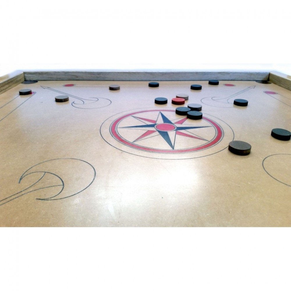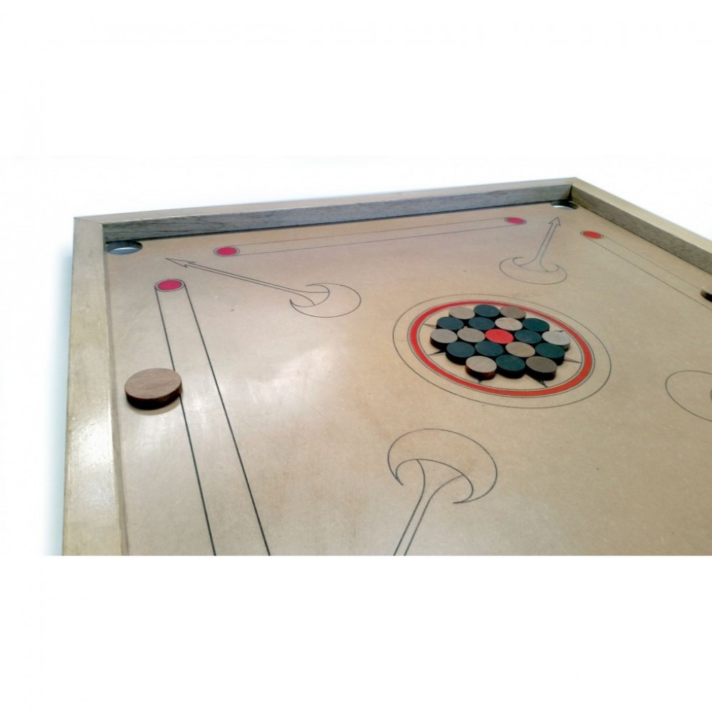 Carrom é um jogo ímpar e poderia ser definido como um bilhar de peteleco, muito embora o jogador tenha que encaçapara as suas todas as suas peças e receba uma punição se encaçapar involuntariamente uma peça do adversário.
