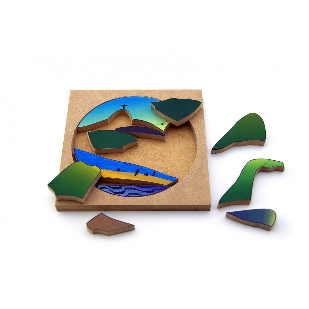 Com tema da paisagem do Rio de Janeiro, são dois desafios em um produto. Este quebra cabeça, pode ser um quebra cabeça normal encaixando todas as peças dentro da base, mas também pode ser um desafio de habilidade onde as peças devem ser equilibradas empilhando-as uma em cima da outra.