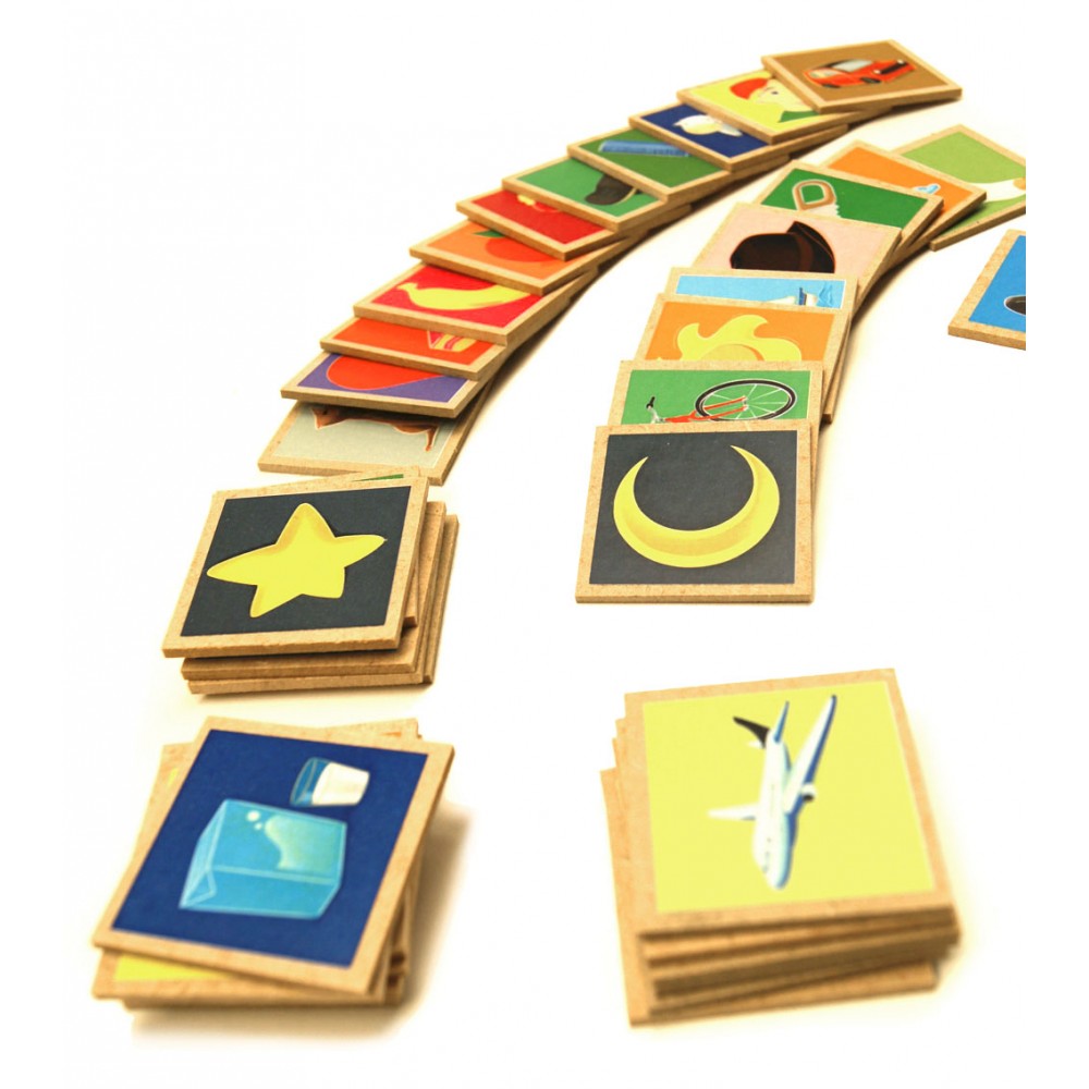 Contém: 1 dado de cores em madeira 42 fichas com figuras coloridas 6 caixas em 6 cores distintas Folheto com regras e instruções para jogar.