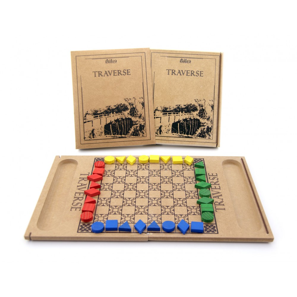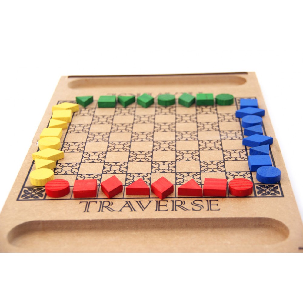 Traverse é um jogo cativante e desafiador criado por Michael Kuby e John Miller em 1987. Há quem diga que o jogo é mais antigo, pois é encontrado na Suécia pelo nome de Taifho e apresentado como um antigo jogo japonês. Possui uma clara semelhança com o jogo Halma, mas em contraste com este jogo, há quatro diferentes peças que se movem em quatro diferentes direções. As jogadas do Traverse se comparam com o ato de atravessar uma grande avenida fora da faixa para pedestres, onde precisamos observar muitos elementos simultaneamente para que possamos fazê-lo com segurança. Questões como saber para onde ir, para onde olhar, qual a direção dos carros, qual a velocidade dos carros e se é preciso andar rápido são fundamentais para garantir o cumprimento do objetivo. É um jogo divertido e bastante fácil de aprender, mas desafiador, uma vez que as peças possuem características individuais e cada jogador possui liberdade para posicioná-las nas casas da sua base de acordo com a sua vontade no início do jogo. Definir o posicionamento adequado das peças no inicio da partida é essencial para um bom desempenho no jogo.
