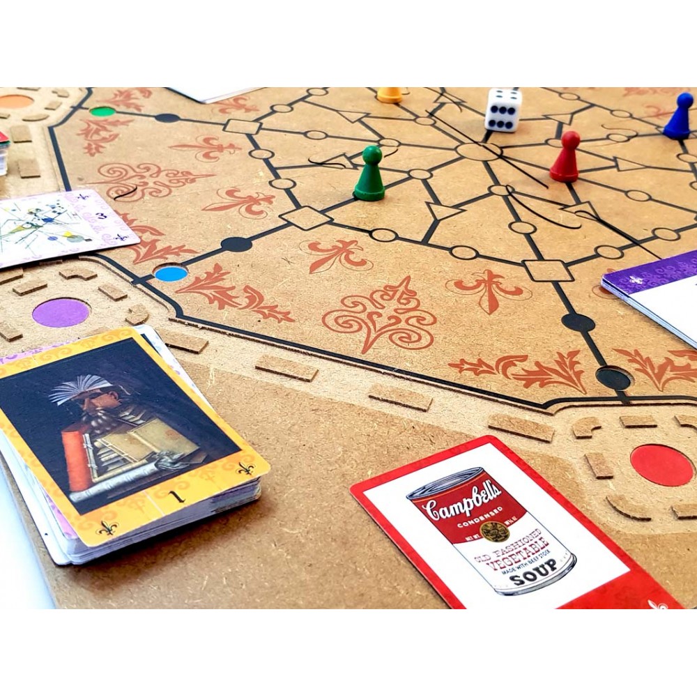 O jogo Mistérios das Sete Torres foi criado a partir do livro O museu das sete torres, de autoria de Nereide Santa Rosa, publicado em 2010 pela Editora Moderna. A equipe editorial da referida editora acompanhou e avaliou as etapas do processo de criação do jogo, participando ativamente de seu desenvolvimento, garantindo o seu caráter lúdico e didático. O jogo se desenvolve por meio de um percurso sobre um tabuleiro que leva os participantes às sete torres, cada uma com sua cor específica. Cada torre representa uma obra de arte da história da arte universal e os ícones da arte brasileira, abrangendo desde o período da Renascença, se desenvolvendo com obras do Barroco, do Neoclassicismo, do Romantismo, do Realismo, do Impressionismo, sobre a Arte Africana, sobre o Impressionismo, Expressionismo, Cubismo, Surrealismo e Abstracionismo. O objetivo é conquistar a torre, resgatando uma obra de arte, até possuir a maior quantidade de obras entre os participantes. Para alcançar o objetivo, o participante deve chegar e entrar em uma das torres e assim sortear uma carta com os “mistérios”, isto é, perguntas sobre a obra de arte: quem fez, o titulo da obra e o que. O participante só pode ter quatro cartas na mão e ao combinar os mistérios, ele sai em busca da obra que responde suas perguntas. Porem, nada é muito fácil, pois nesse percurso, os jogadores enfrentam diferentes situações de disputa dificultando o acesso às torres.
