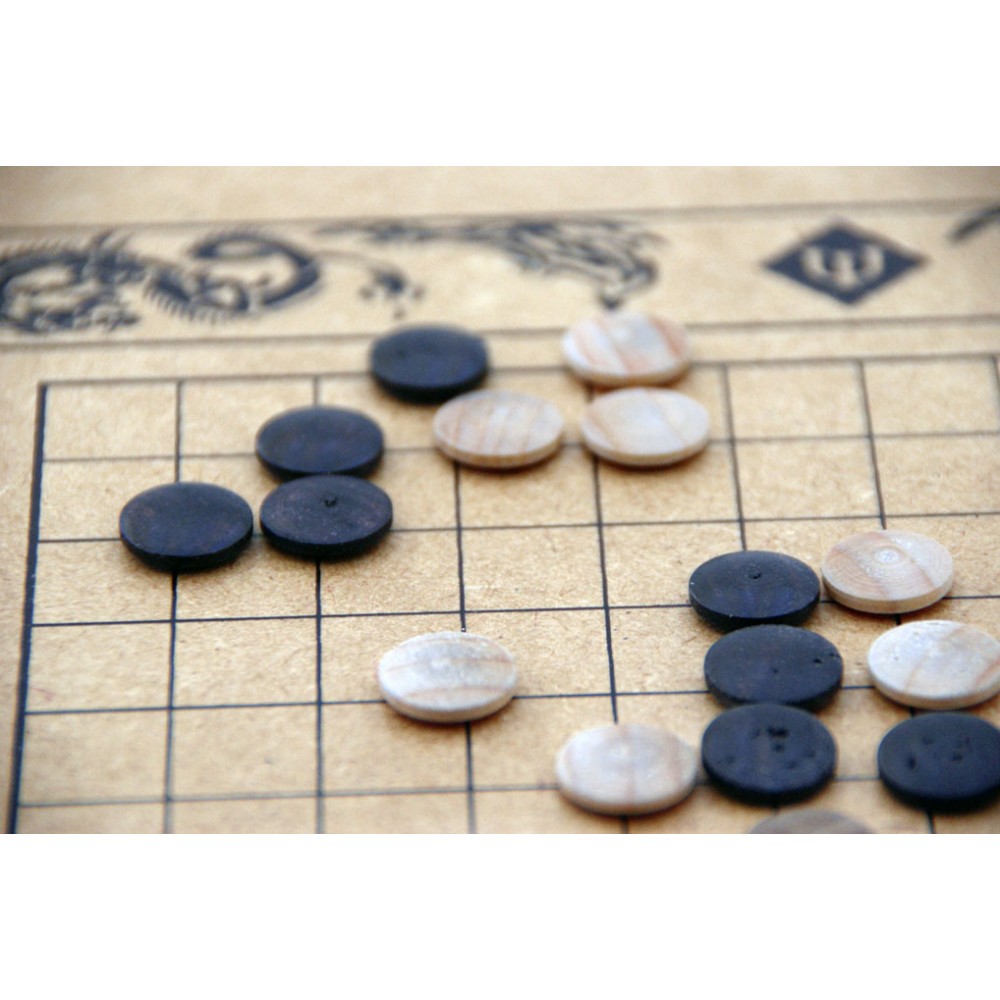 Contém: 1 tabuleiro em MDF; 85 peças de madeira claras; 85 peças de madeira escuras; folheto com regras e instruções para jogar.