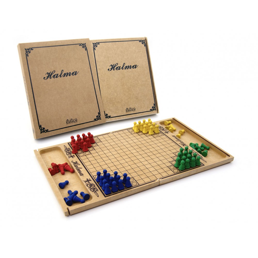 Halma significa “Salto” em grego. É o único jogo clássico internacionalmente conhecido, do século XIX, originado nos Estados Unidos. Foi criado pelo médico cirurgião, cardiologista e professor Dr. George Howard Monks entre 1883 e 1884 baseado num jogo britânico chamado “Hoppity”. Deu origem, na sua versão para até 6 pessoas, ao jogo conhecido como “Dama Chinesa” que foi lançado inicialmente como “star halma” (halma estrela) mas teve o seu nome mudado, por uma estratégia de marketing, para torná-lo mais exótico. Halma é um jogo de conquista de território onde, vence, quem formar estratégias de forma a encurtar distâncias em cada movimento. A atenção é fundamental para não entregar atalhos aos adversários e exige uma visão espacial do conjunto para definir os seus movimentos.