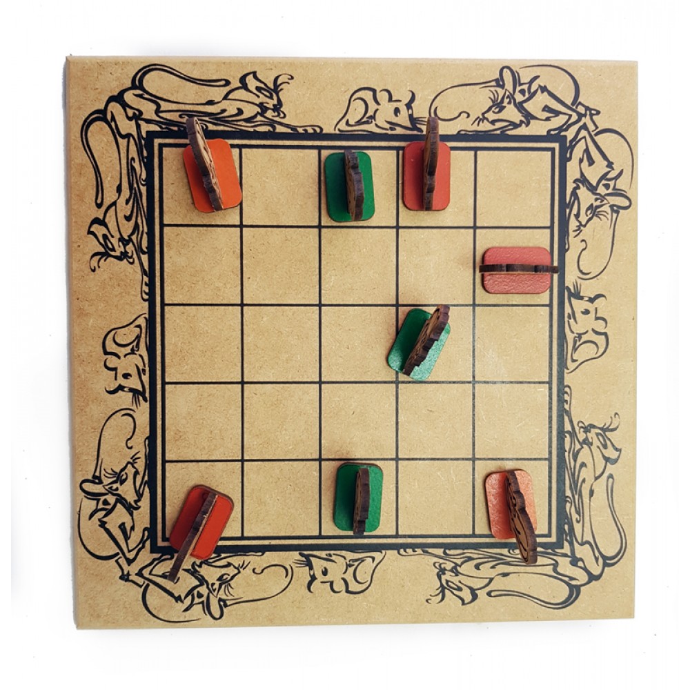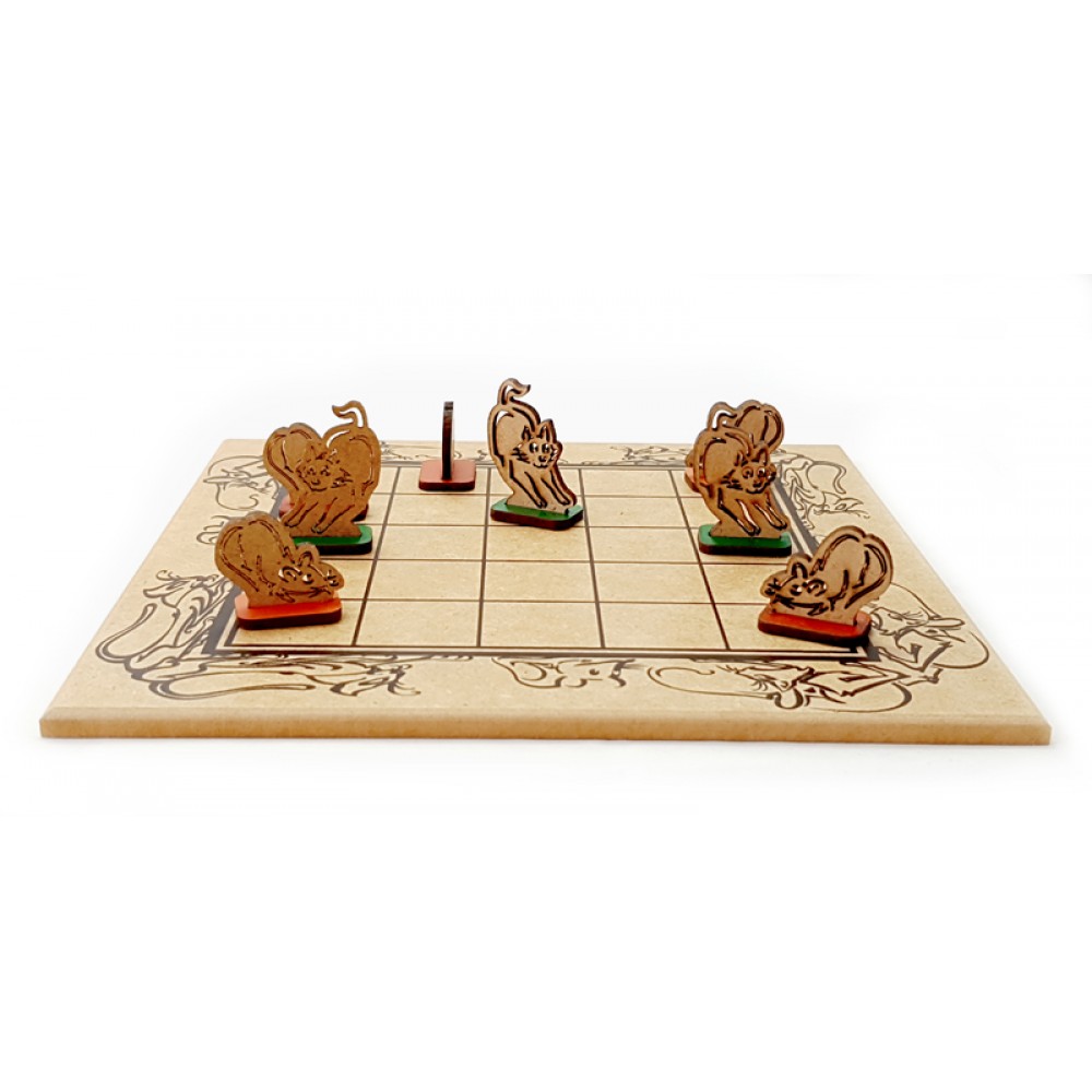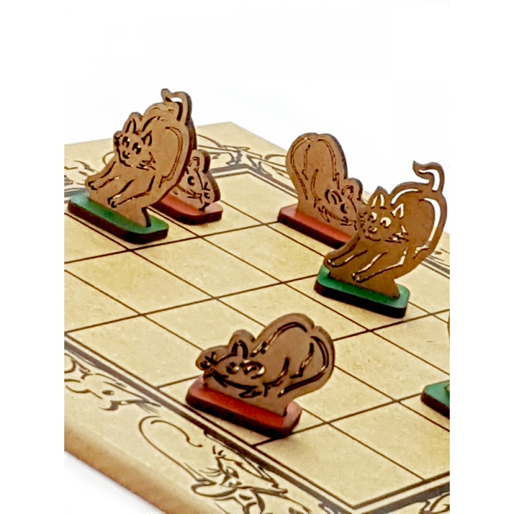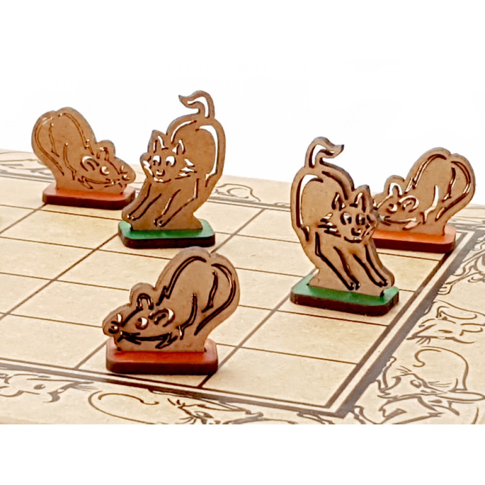 Feles et Mus (Gato e Rato) é um quebra-cabeça individual cujo objetivo é colocar os 3 gatos e 5 ratos no tabuleiro de tal forma que os ratos não fiquem alinhados com os gatos, na horizontal, vertical ou diagonal.